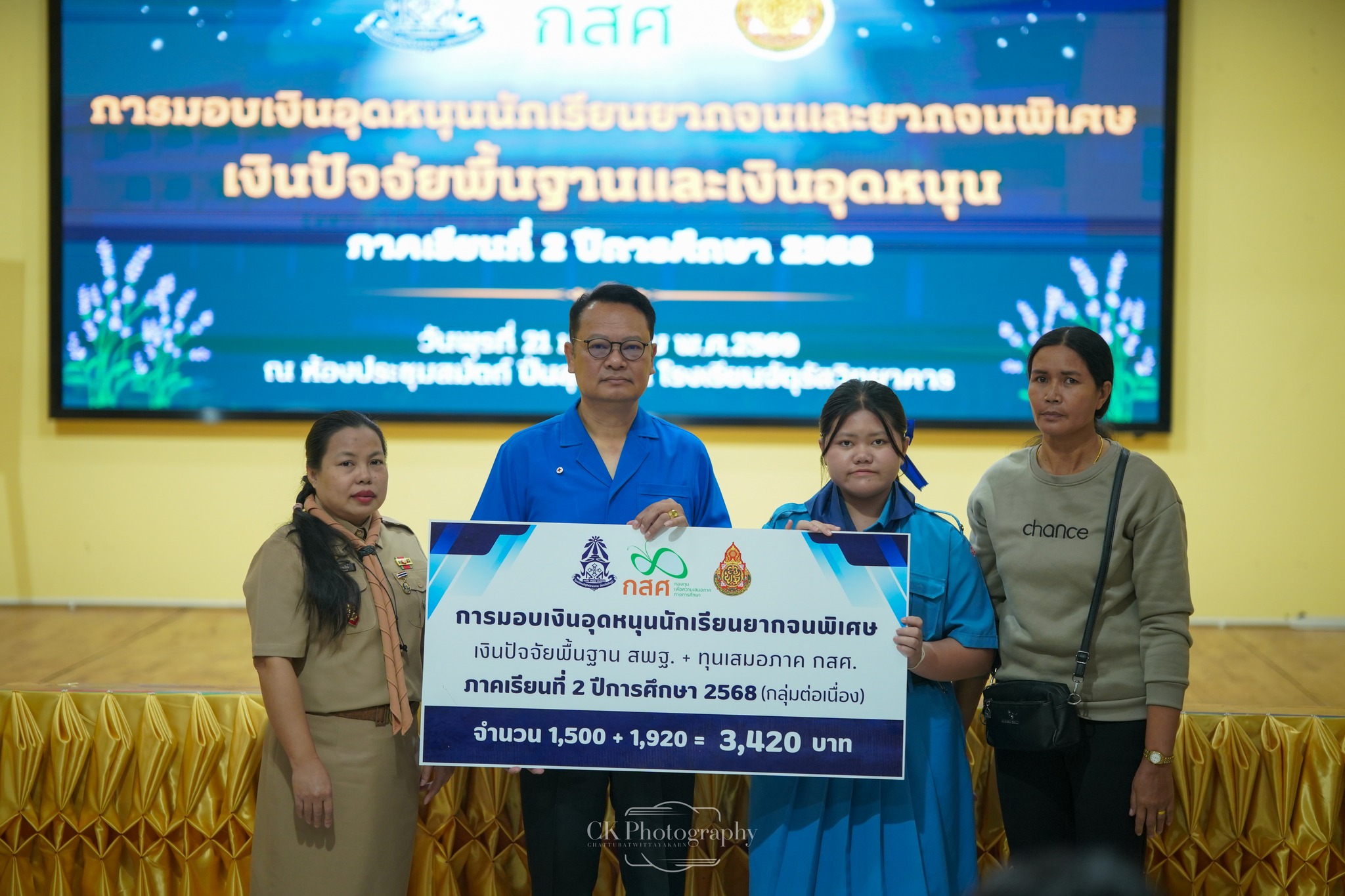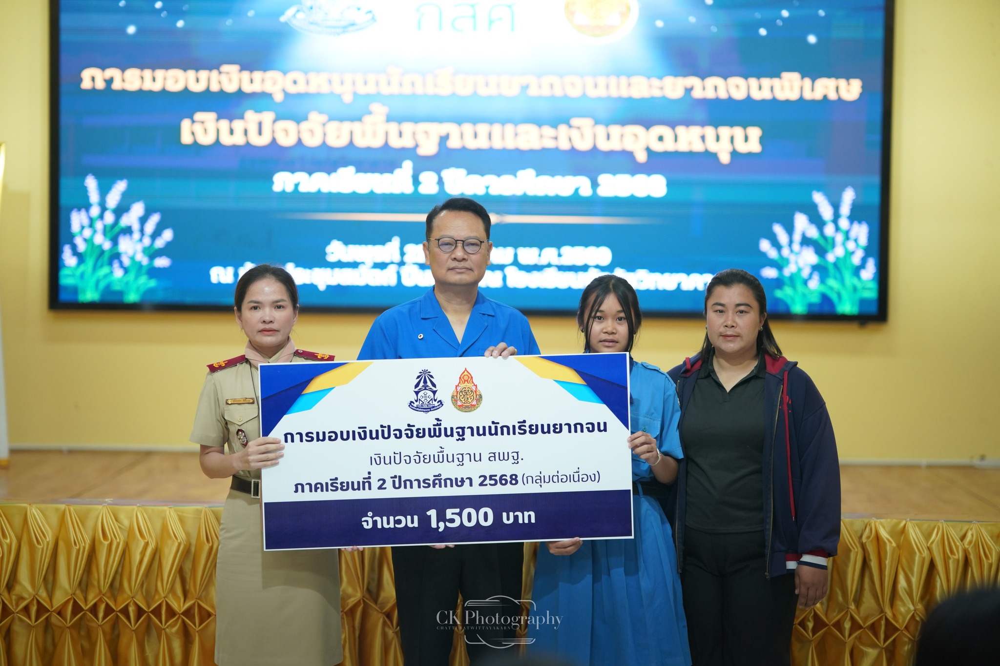 วันพุธ ที่ 21 มกราคม 2569 งานระบบดูแลช่วยเหลือนักเรียนและงานแนะแนว จัดพิธีมอบเงินอุดหนุนนักเรียนยากจน และยากจนพิเศษกลุ่มต่อเนื่อง ภาคเรียนที่ 2 ปีการศึกษา 2568 สำหรับนักเรียนขั้นมัธยมศึกษาปีที่ 1,2 และ 3 จำนวน 148 คน โดยเป็นเป็นเงินอุดหนุนนักเรียนยากจน ได้รับการสนับสนุนจาก สพฐ. จำนวน 87 คนคนละ 1,500 บาท รวมเงิน 130,500 บาท และเงินอุดหนุนนักเรียนยากจนพิเศษ ได้รับการสนับสุนจากกองทุนเพื่อความเสมอภาคทางการศึกษา(กสต.)จ้านวน 61 คน คนละ 1,920 บาท รรมเป็นเป็นเป็น 117,120 บาท พิธีประกอบไปด้วย ผู้บริหาร ผู้ปกครองนักเรียน และคณะครูที่ ปรึกษาเพื่อรายงานข้อมูลในระบบกับหน่วยงานที่เกี่ยวข้อง โดยมี ดร.ธวัชชัย เกิ้นโนนกอก ผู้อำนวยการโรเรียนให้เกียรติเป็นประธานพิธีเปิด และพบปะ ผู้ปกครองนักเรียน ณ ห้องประชุมสมัตถ์ปิ่นสุวรรรณ โรงเรียนจัตุรัสวิทยาคาร