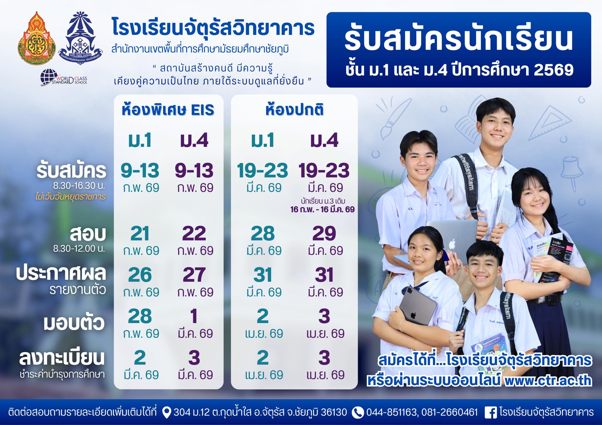 โรงเรียนจัตุรัสวิทยาคารเปิดรับสมัครนักเรียนชั้นมัธยมศึกษาปีที่ 1, 4 ปีการศึกษา 2569