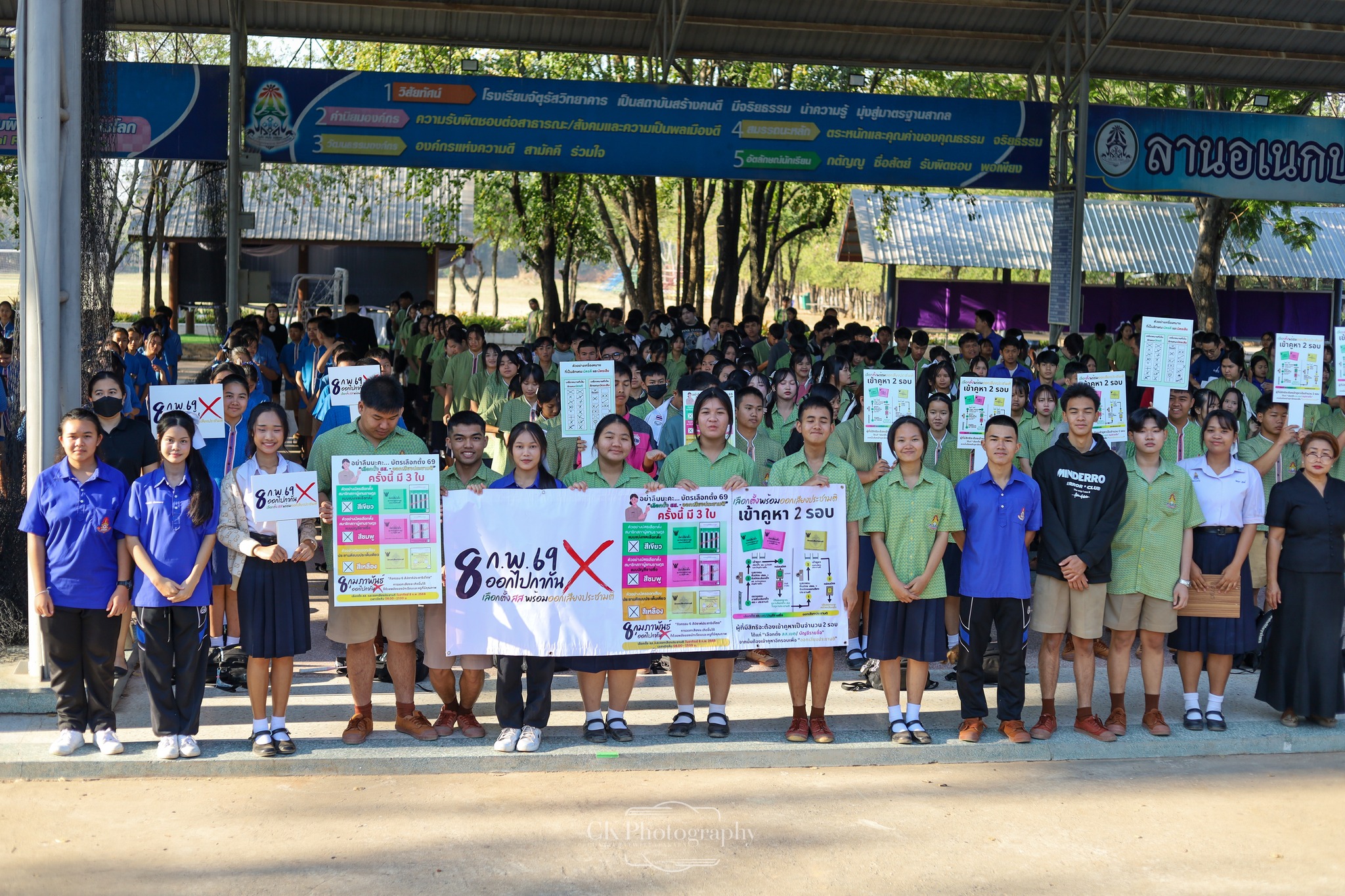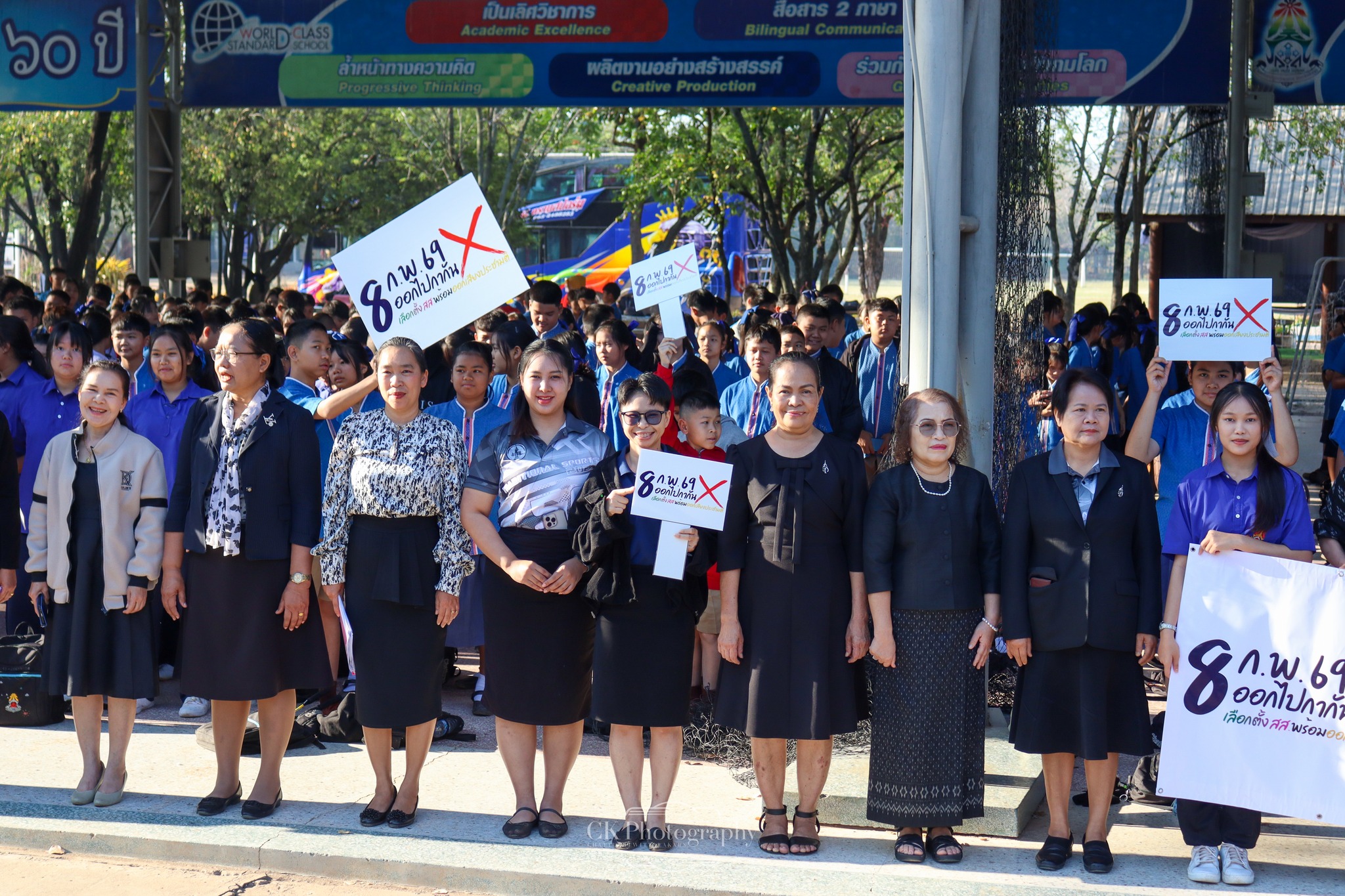วันศุกร์ที่ 6 กุมภาพันธ์ 2569 โรงเรียนจัตุรัสวิทยาคาร นำโดย ดร.ธวัชชัย เกิ้นโนนกอก ผู้อำนวยการโรงเรียน พร้อมด้วยรองผู้อำนวยการ คณะครู และนักเรียน จัดกิจกรรมรณรงค์การเลือกตั้ง และให้ความรู้เกี่ยวกับ “บัตรเลือกตั้ง 3 ใบ” เพื่อส่งเสริมประชาธิปไตยในสถานศึกษา และรณรงค์เชิญชวนให้ไปใช้สิทธิ์เลือกตั้งวันอาทิตย์ที่ 8 กุมภาพันธ์ 2569