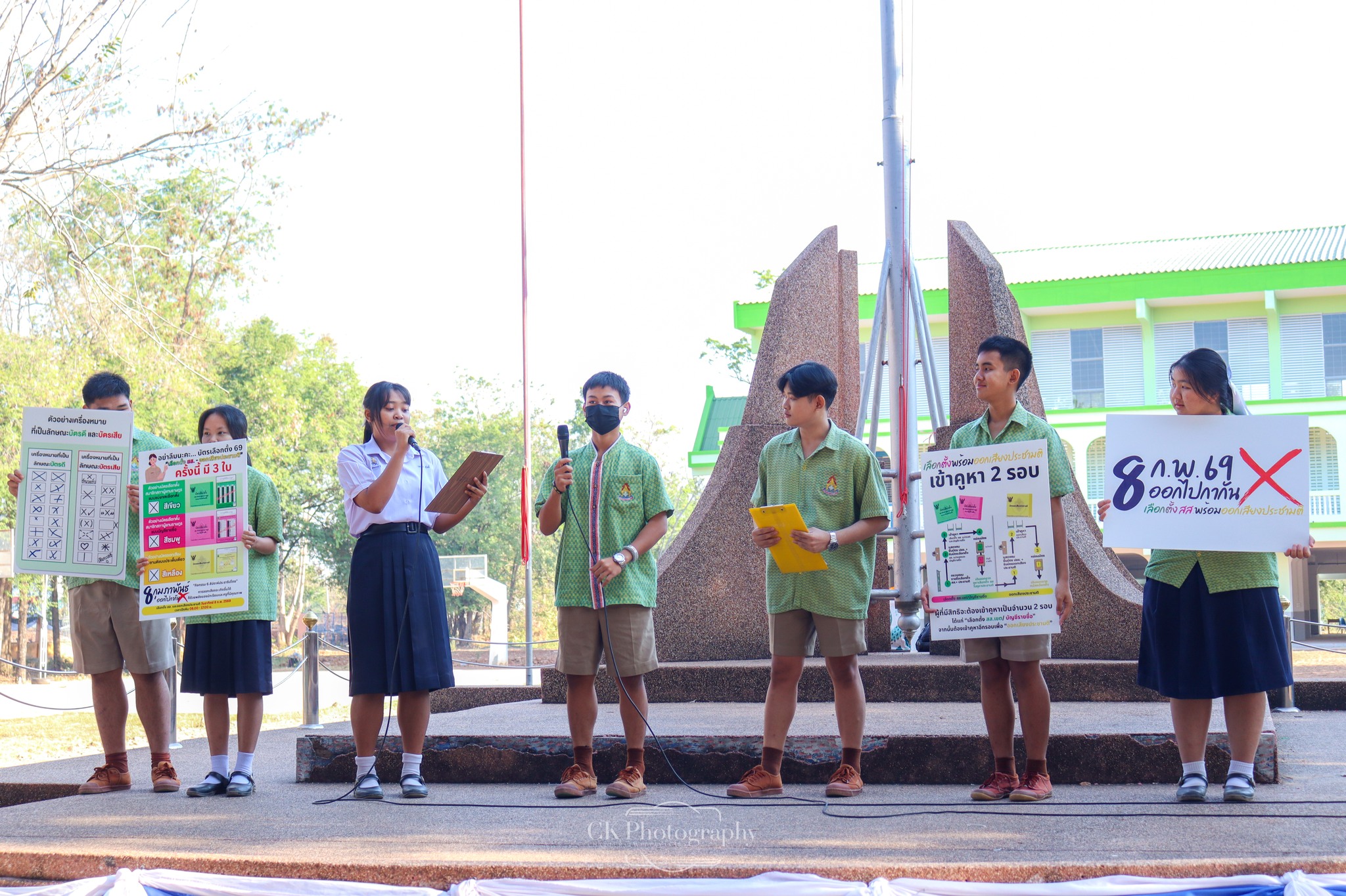 วันศุกร์ที่ 6 กุมภาพันธ์ 2569 โรงเรียนจัตุรัสวิทยาคาร นำโดย ดร.ธวัชชัย เกิ้นโนนกอก ผู้อำนวยการโรงเรียน พร้อมด้วยรองผู้อำนวยการ คณะครู และนักเรียน จัดกิจกรรมรณรงค์การเลือกตั้ง และให้ความรู้เกี่ยวกับ “บัตรเลือกตั้ง 3 ใบ” เพื่อส่งเสริมประชาธิปไตยในสถานศึกษา